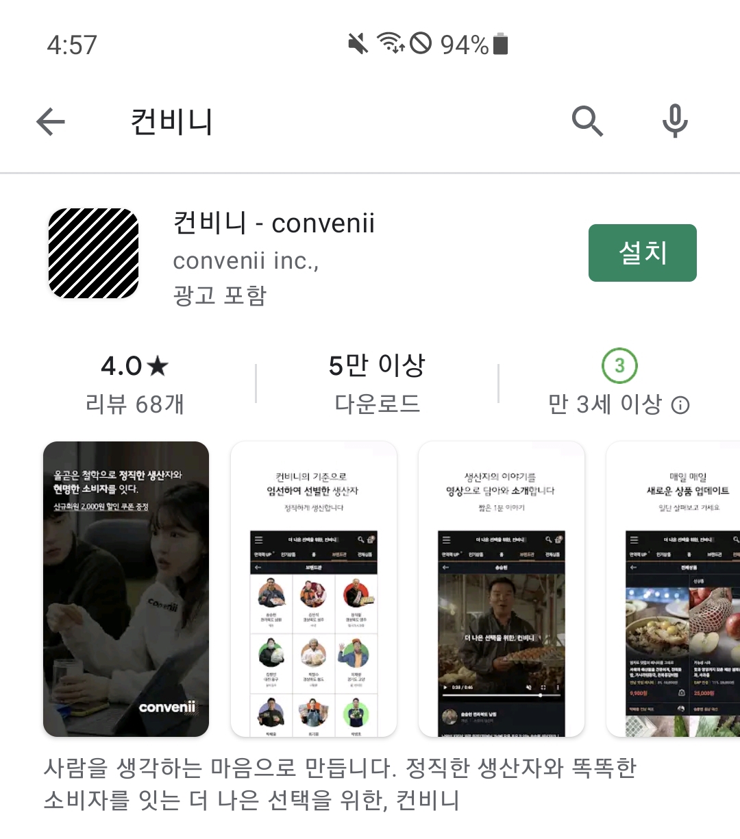 구글 Play 스토어/앱스토어에서 컨비니 앱을 설치하고 실행한다.