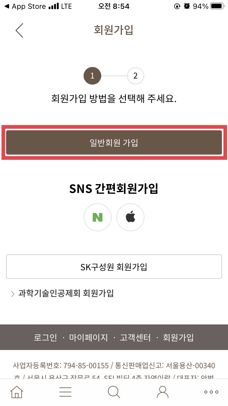 로그인 페이지에서 아래로 화면을 내려보면 '회원가입'이 있는데 여기를 눌러주면 된다.