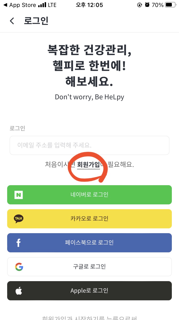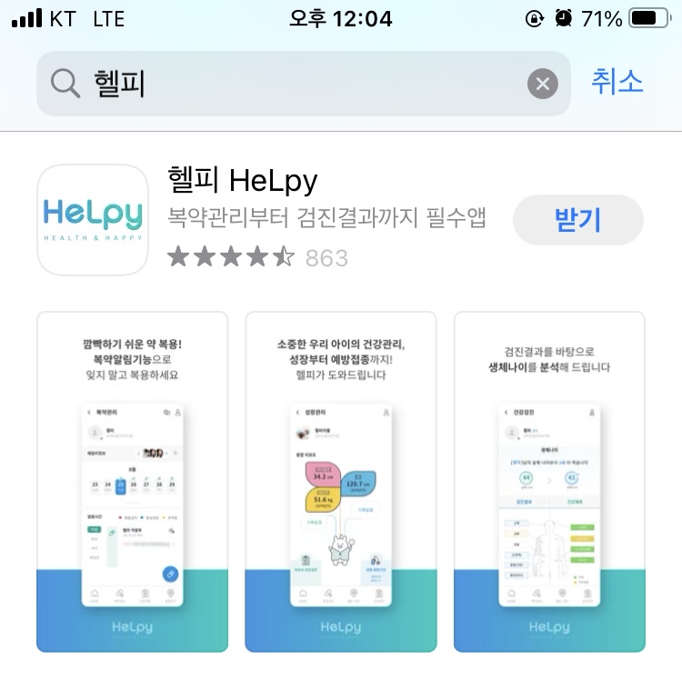 구글 플레이 스토어 및 앱스토어에서 헬피 HeLpy 앱을 설치하고 실행한다.