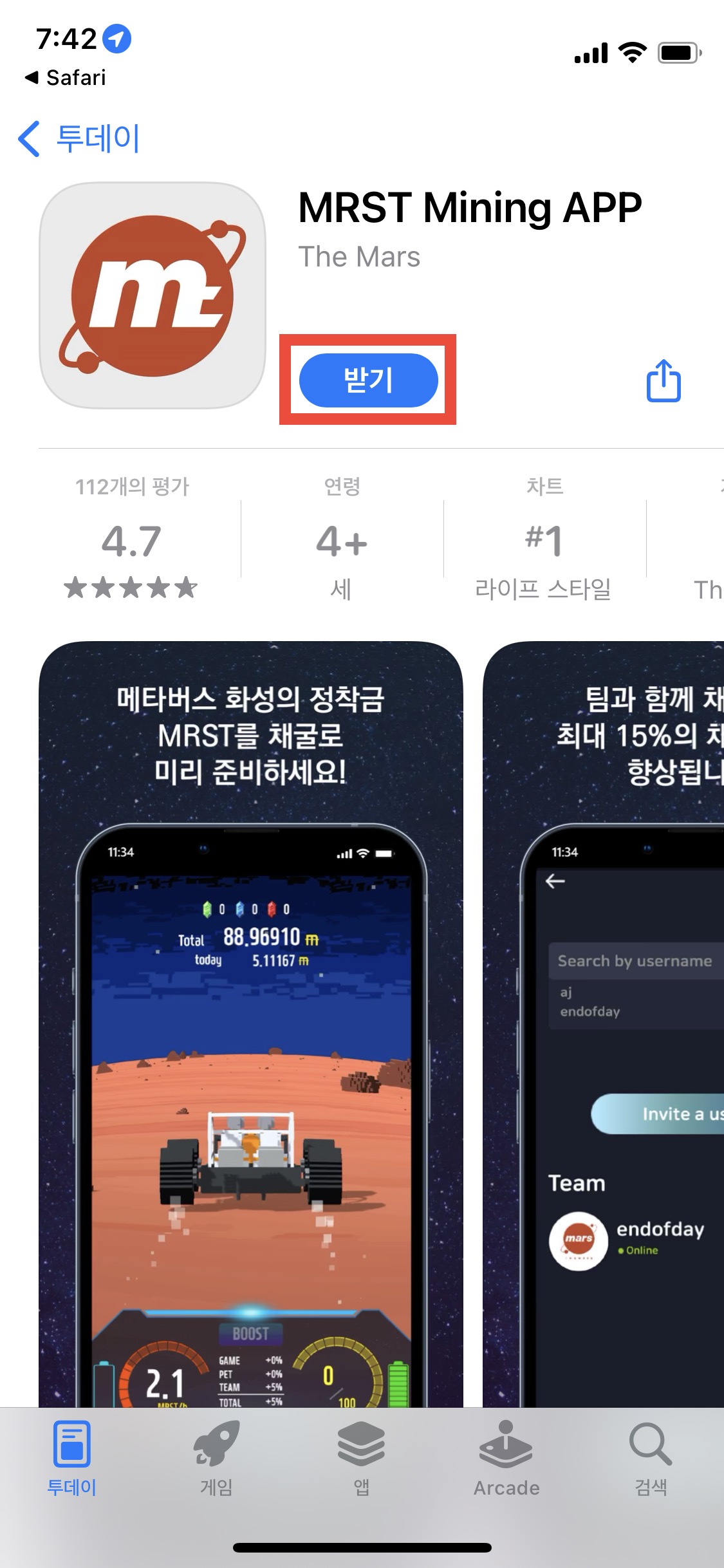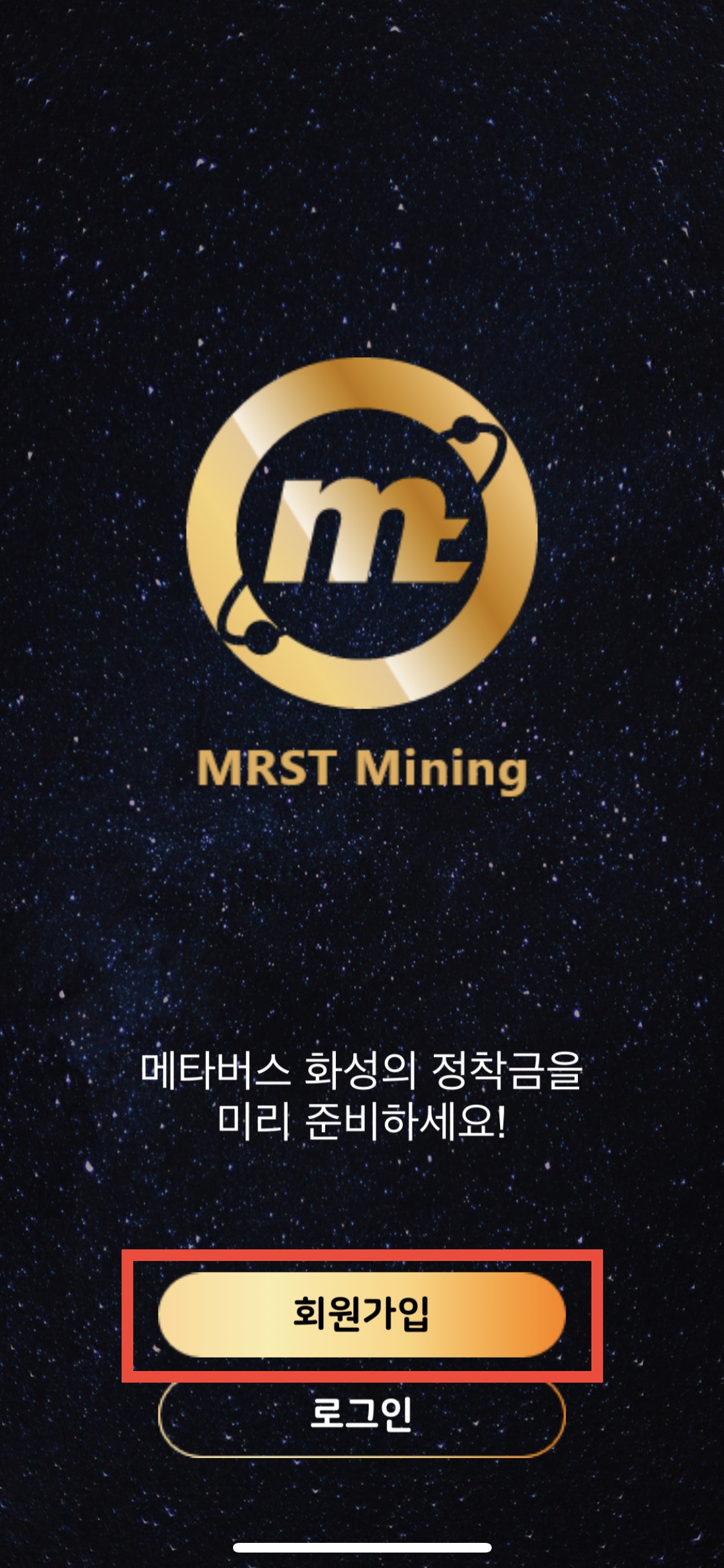 4. 앱스토어에서 MRST Mining APP을 설치한 다음 실행하여 '회원가입'을 진행해주세요.