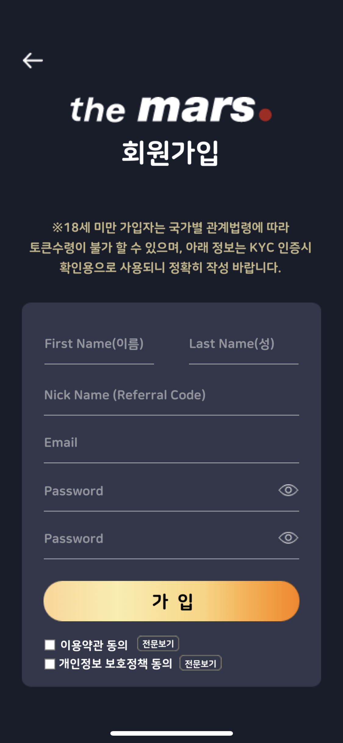 더마르스에서 MRST를 채굴하기 위해선, MRST Mining APP을 구글 플레이 스토어나 앱스토어에서 설치한 다음 회원가입을 진행해야 합니다.