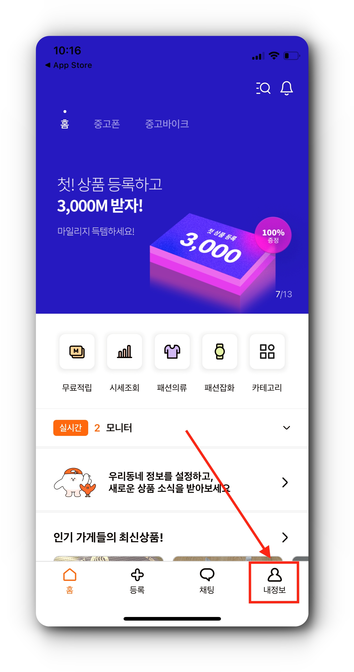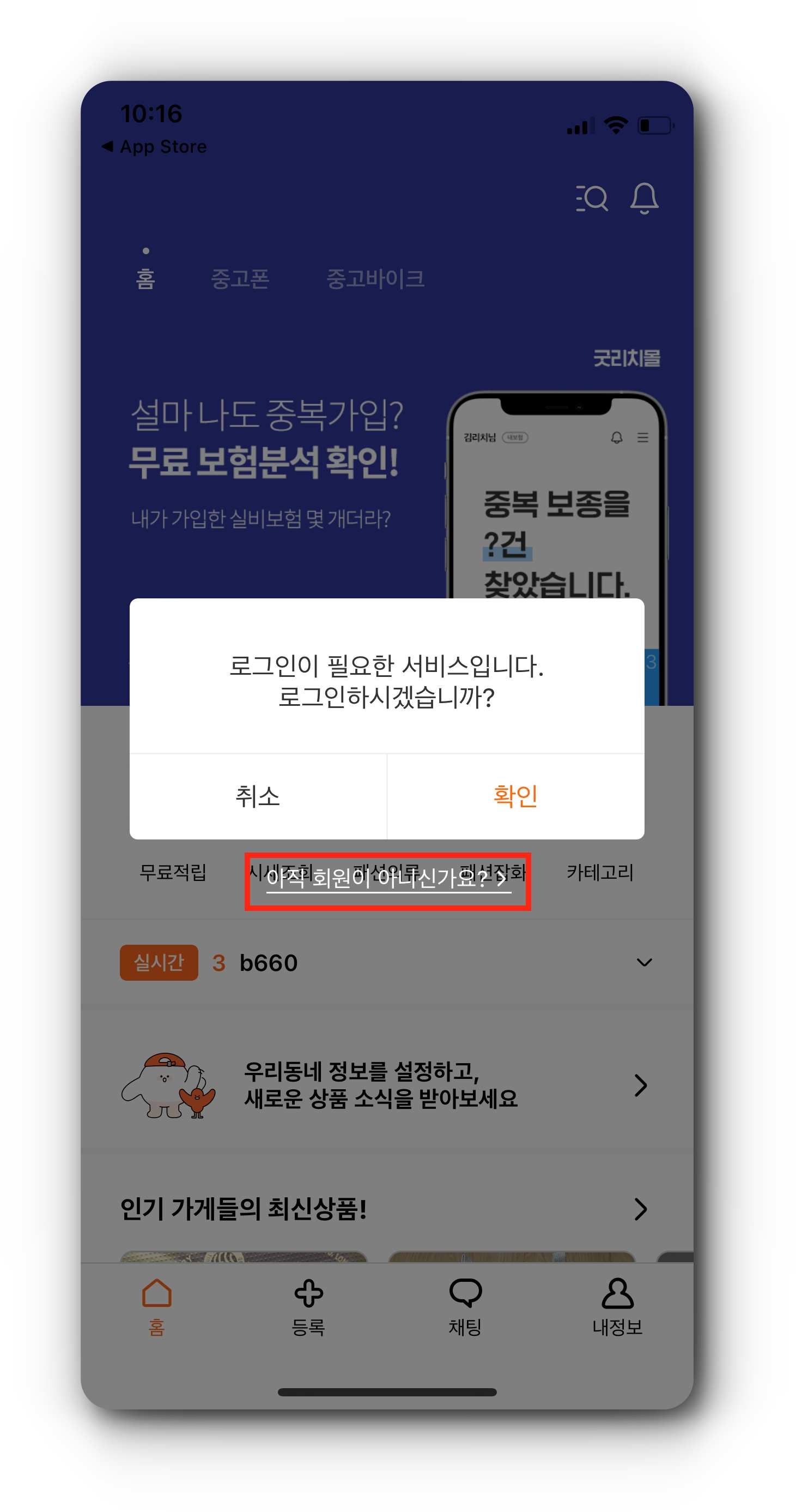 - 앱스토어에서 중고나라 앱 설치 후 실행