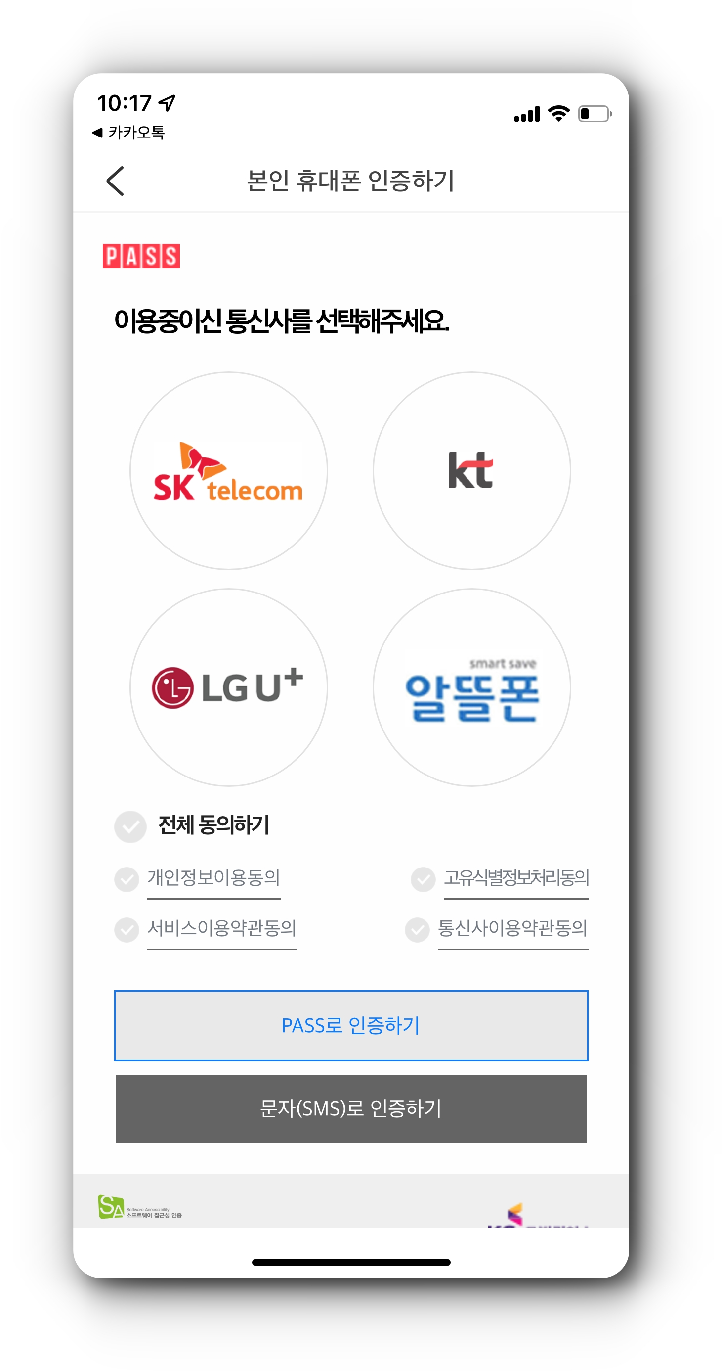 - 이용약관 동의 후 휴대폰 본인인증 진행