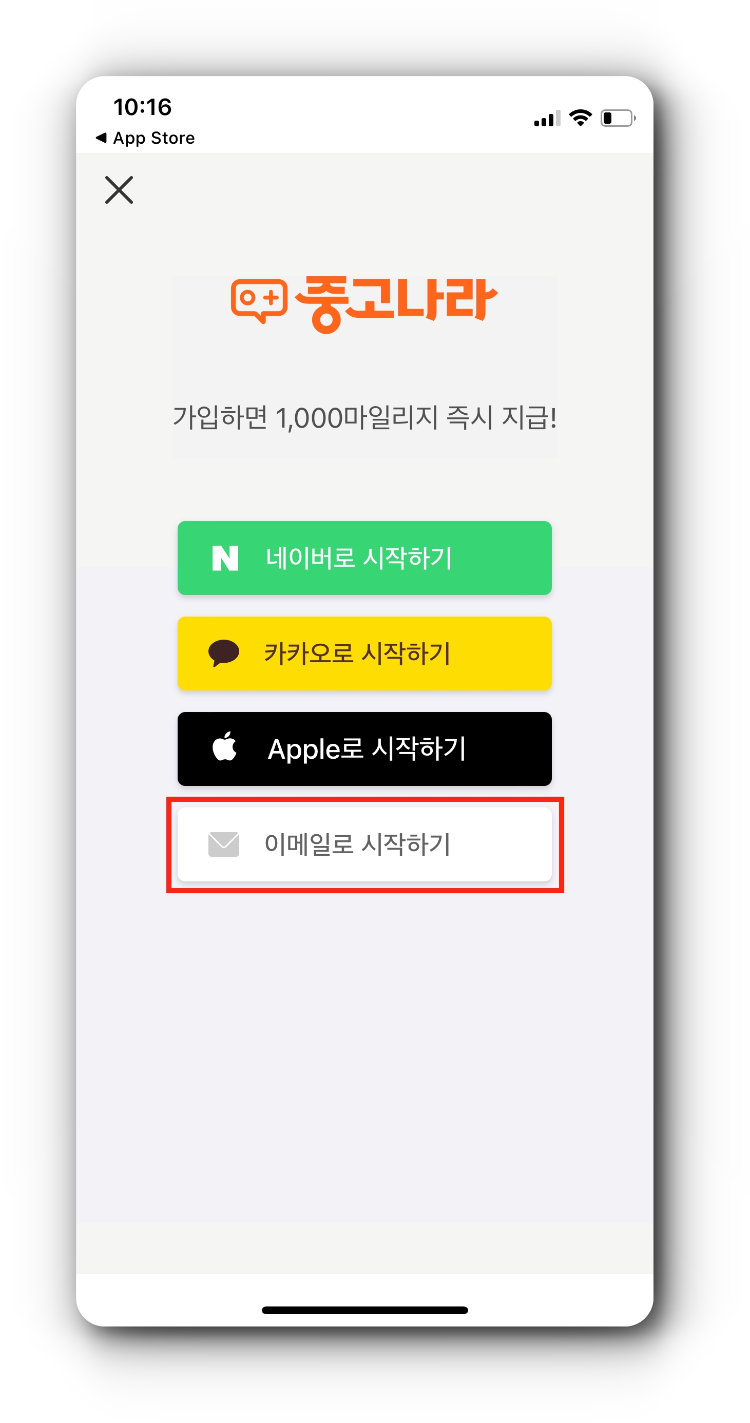 - [이메일로 시작하기] 터치