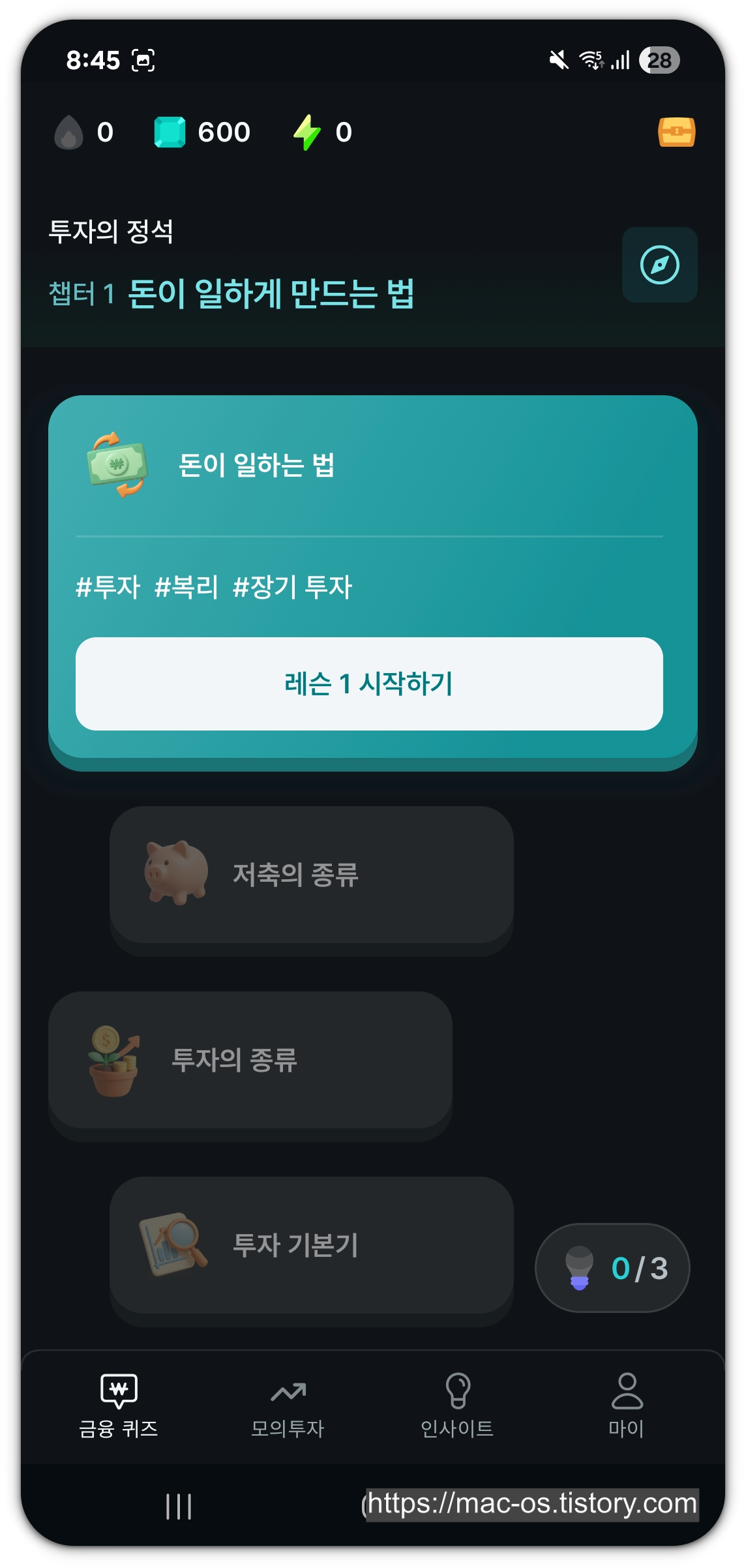 - 경제 퀴즈와 뉴스 학습: 매일 3회 제공되는 레슨과 경제 뉴스 퀴즈를 풀며 자연스럽게 경제 지식을 쌓고 포인트를 적립할 수 있습니다.